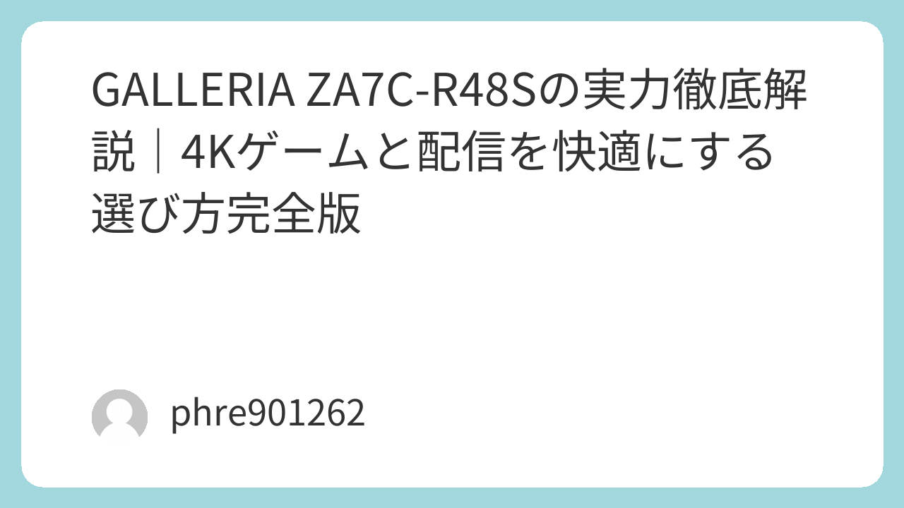 GALLERIA ZA7C-R48Sを検索する人の多くは、「RTX 4080 SUPERクラスの実力はどこまで伸びるのか」「買ったあとに後悔しない周辺機器は何か」を短時間で把握したいはずです。結論から言えば、ZA7C-R48Sは4Kでも画質を攻めやすい土台があり、環境さえ整えれば長く主力になり得ます。