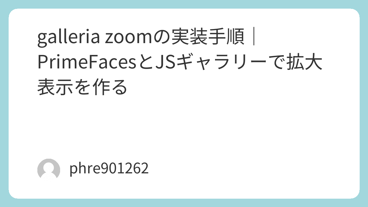 PrimeFacesのGalleriaは「表示する」機能が中心で、ズームは後付けになることが多い。鍵になるのは、Galleriaが描画したimg要素にズーム処理を紐づけ、画像が切り替わった後にも同じ処理を再適用する点にある。ここを外すと「最初の1枚だけズームできて、次から効かない」という現象が起こりがちだ。