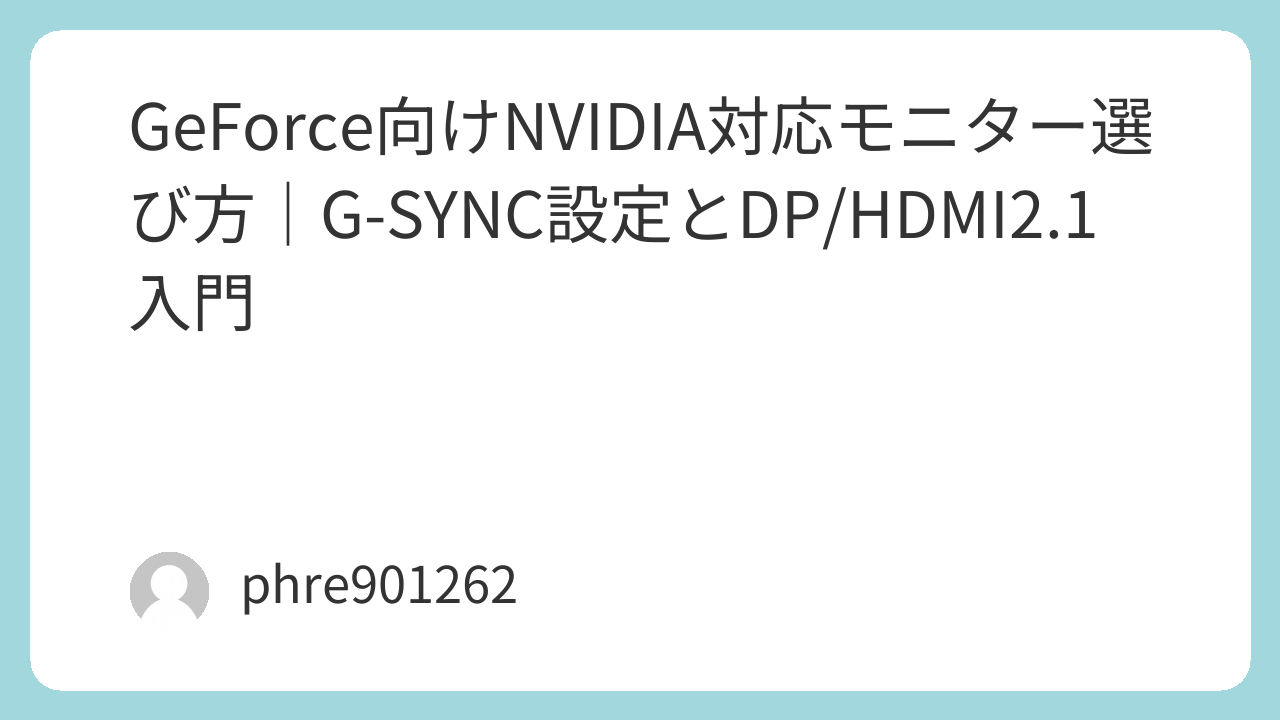NVIDIAで快適に遊ぶなら、モニター側がVRRに対応していることが大前提。さらに、解像度とリフレッシュレートに対して端子の帯域が足りていないと、設定をいくら触っても上限が出ない。ここを押さえたうえで用途を決めると迷いが減る。