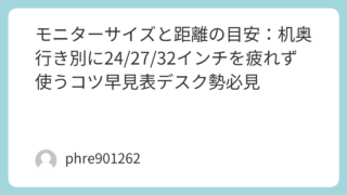 未分類 モニターサイズと距離の目安:机奥行き別に24/27/32インチを疲れず使うコツ早見表デスク勢必見