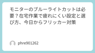 夜になると目がショボショボして、肩まで重くなる。そんなとき「ブルーライトカットのモニターにすれば全部解決するのでは?」と考えがちです。結論から言うと、ブルーライトカットは“効く場面はある”けれど、それだけで勝てる相手じゃありません。目の疲れ...