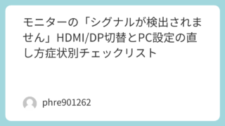 未分類 モニターの「シグナルが検出されません」HDMI/DP切替とPC設定の直し方症状別チェックリスト