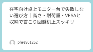 在宅ワークや勉強で「モニターが低くて前のめりになる」「キーボードの置き場が毎回ズレる」。この手のストレス、だいたい“高さ”と“机の散らかり”が原因だったりする。そこで効くのが卓上モニター台(机上台)。ただ、適当に選ぶと「高すぎて見上げる」「...