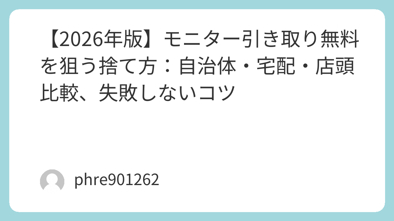 モニターを捨てたいだけなのに、手続きや料金の話が絡んで急に面倒になる。しかも検索すると「無料で引き取り」と「有料が基本」が混ざっていて、どれが自分のケースなのか分かりにくい。結論から言うと、無料を狙うなら“順番”が大事です。最初に「そのモニターがテレビ扱いかどうか」を確定し、次にメーカー回収、ダメなら自治体、最後に宅配回収という流れにすると、余計な出費を回避しやすい。