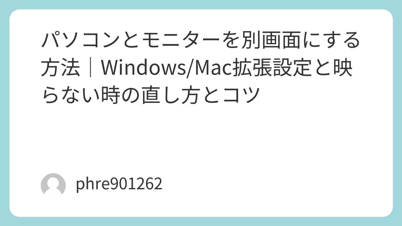 ノートPCにモニターをつないだのに、なぜか同じ画面が映る。これ、結論から言うと「複製」になってるだけのことが多い。別画面で作業領域を増やしたいなら「拡張」に切り替えればほぼ終わる。理由は単純で、複製は“同じ映像を二枚に出すモード”だから。補足として、映った・映らない以前に、まずはPC側がモニターを認識しているかで切り分けると迷子になりにくい。