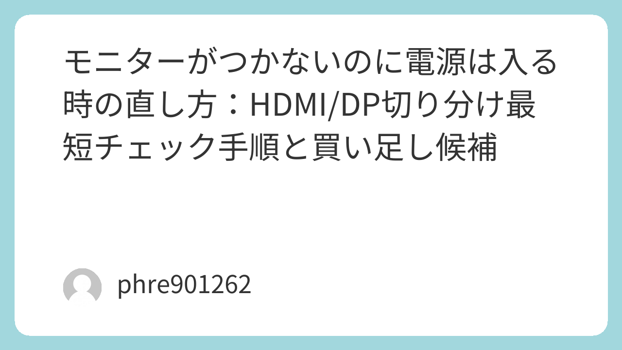 逆に、別機器で映るならモニターは元気なことが多い。その場合は入力切替とケーブル、直結テストのやり直しから入ると復旧しやすい。モニターがつかないのに電源は入る――この症状は焦るけど、順番を守れば意外と自力で戻せる。
