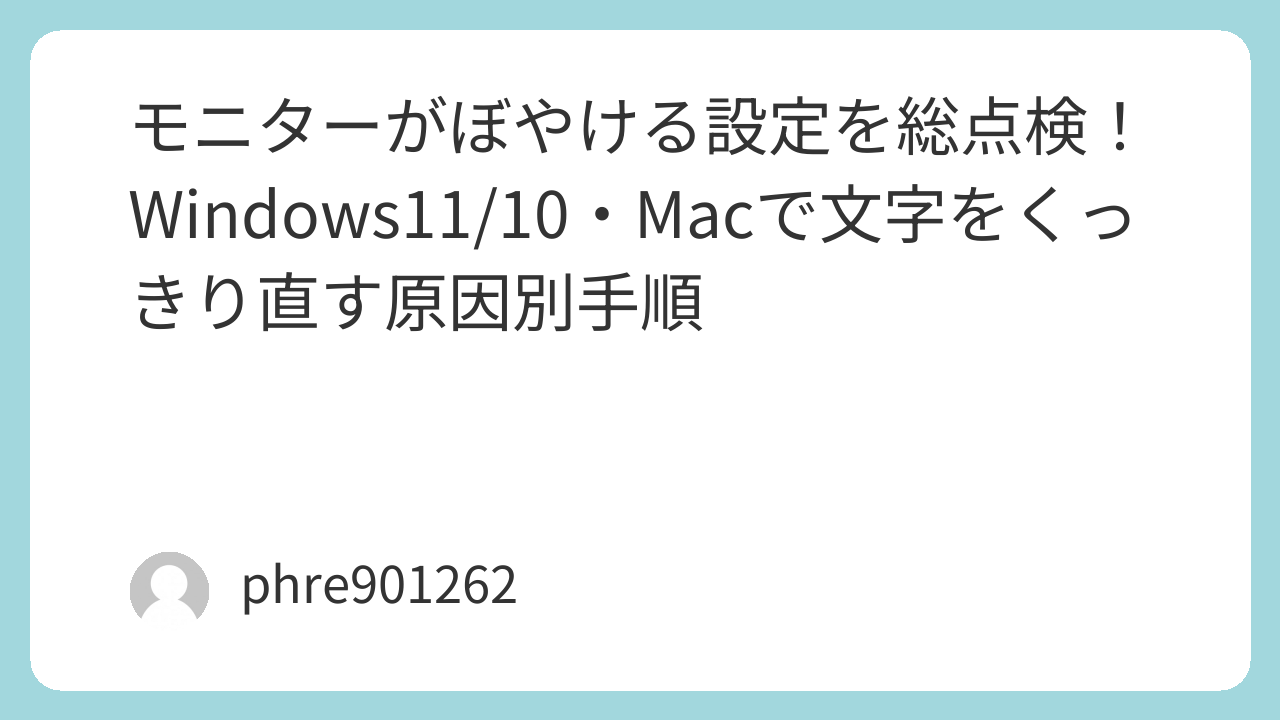 朝、いつものようにPCを開いたのに、モニターの文字がなんだか滲む。ピントが合ってないみたいに眠い。こういう「ぼやけ」は故障っぽく見えるけれど、実際は設定のズレが原因であることが多い。ここでは“いじりすぎて沼る”のを避けるために、直る確率が高い順で、原因と設定を一つずつ潰していく。