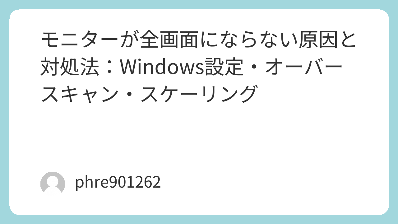 最大化してるのに上下に黒帯が残る。ゲームだけ画面が小さい。テレビにつないだら端が切れる。こういう「全画面にならない」は、ひとつの故障じゃなくて“ズレ方の種類”がいくつかあります。先に言ってしまうと、直しやすい順番はだいたい決まっていて、Windowsの表示設定→テレビ/モニター側の表示設定→グラボ側のスケーリング→アプリやゲーム内設定、の順に確認すると早いです。遠回りしがちな人ほど、いきなりケーブルを買い替えてしまうんですが、まずは設定で切り分けるのが正解でした。