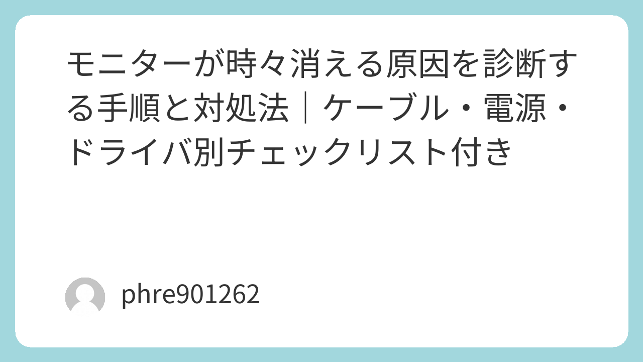 モニターが不意に消えると作業が止まるしストレスが大きい。まずは慌てずに「どのタイミングで」「どう消えるか」を把握することが重要だ。完全にブラックアウトするのか、一瞬暗くなるのか、ケーブルを触ると戻るのか——その観察が診断の鍵になる。