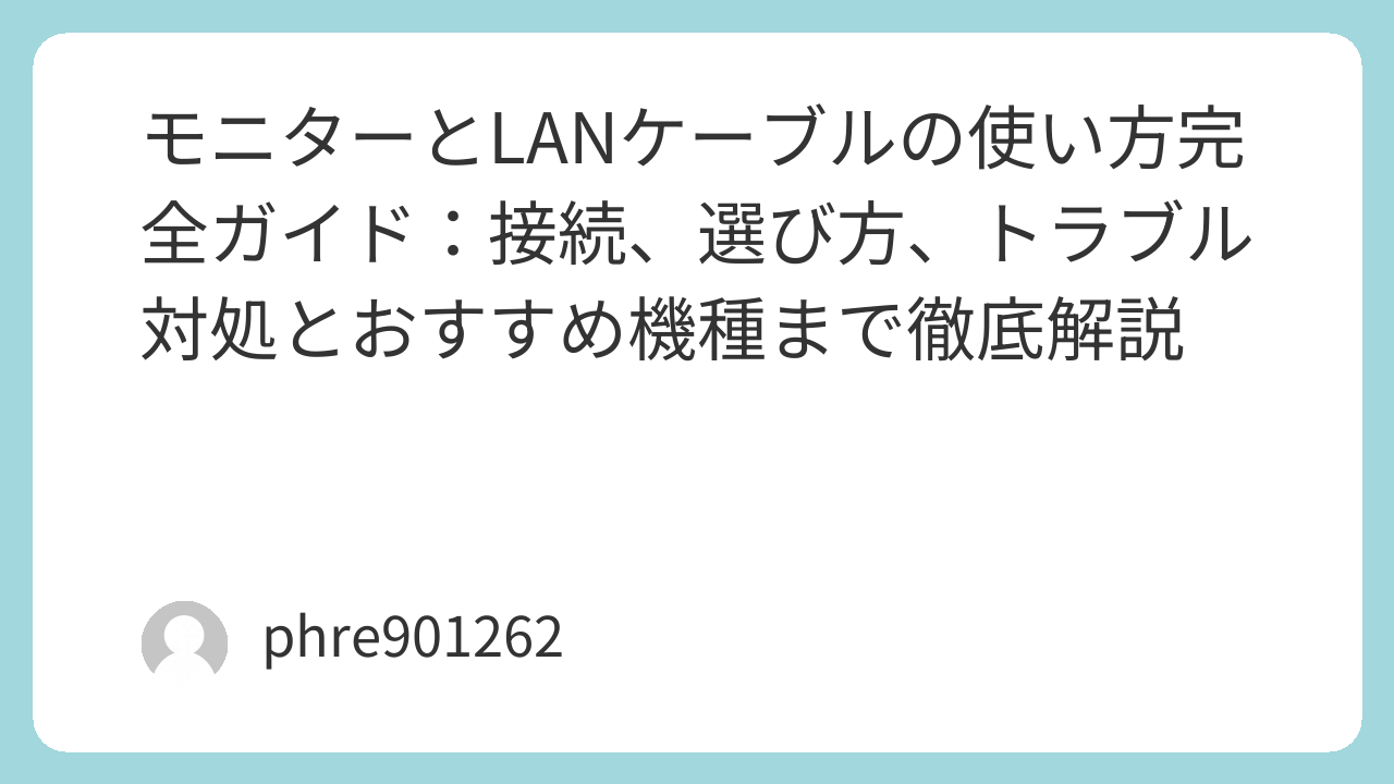 モニターとLANケーブルの使い方完全ガイド:接続、選び方、トラブル対処とおすすめ機種まで徹底解説