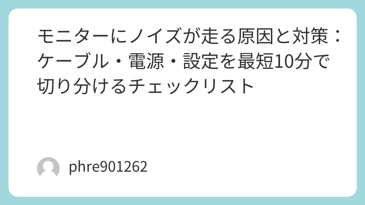 結論から言うと、モニターのノイズは「接続」「設定」「電源環境」「PC側」「本体故障」のどこかにいます。体感、最初の2つで消えることが多い。