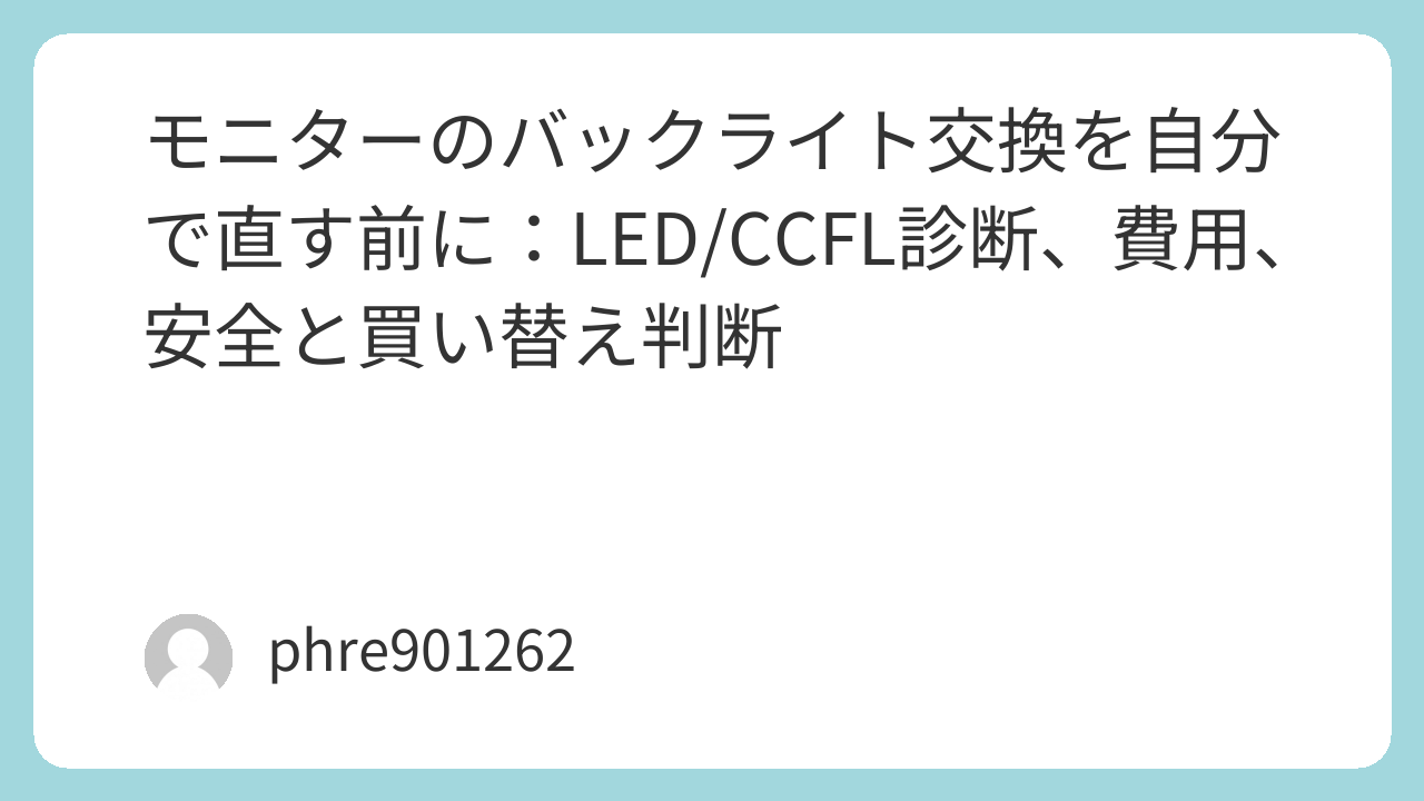 モニターのバックライト交換を自分で直す前に:LED/CCFL診断、費用、安全と買い替え判断