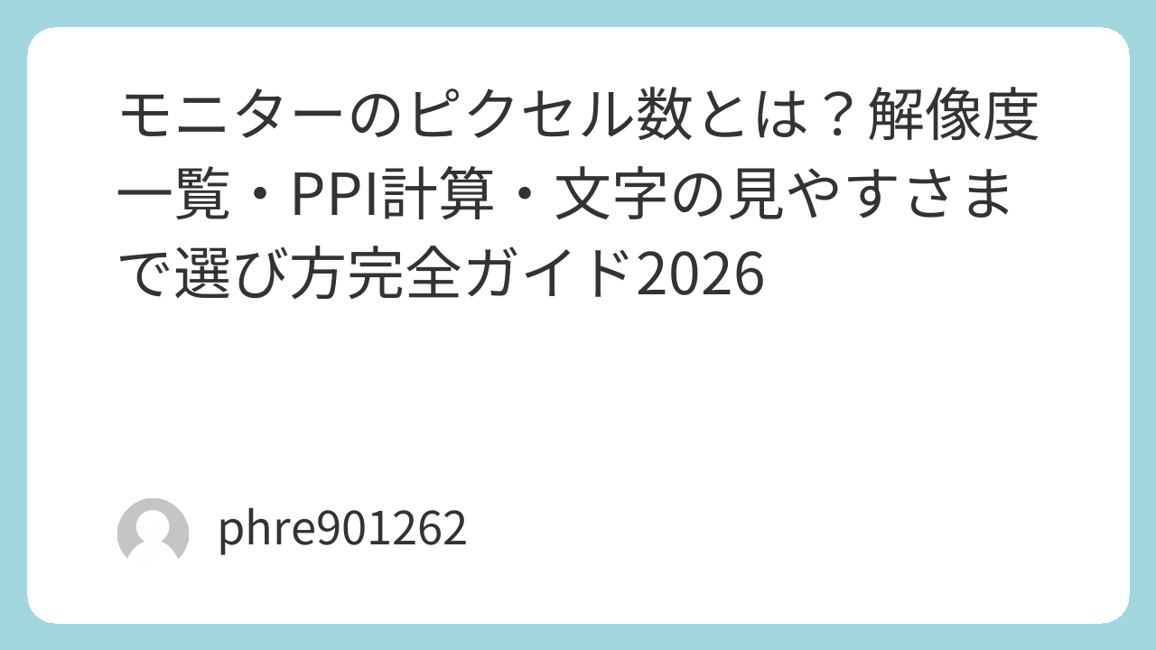 モニターのピクセル数とは?解像度一覧・PPI計算・文字の見やすさまで選び方完全ガイド2026