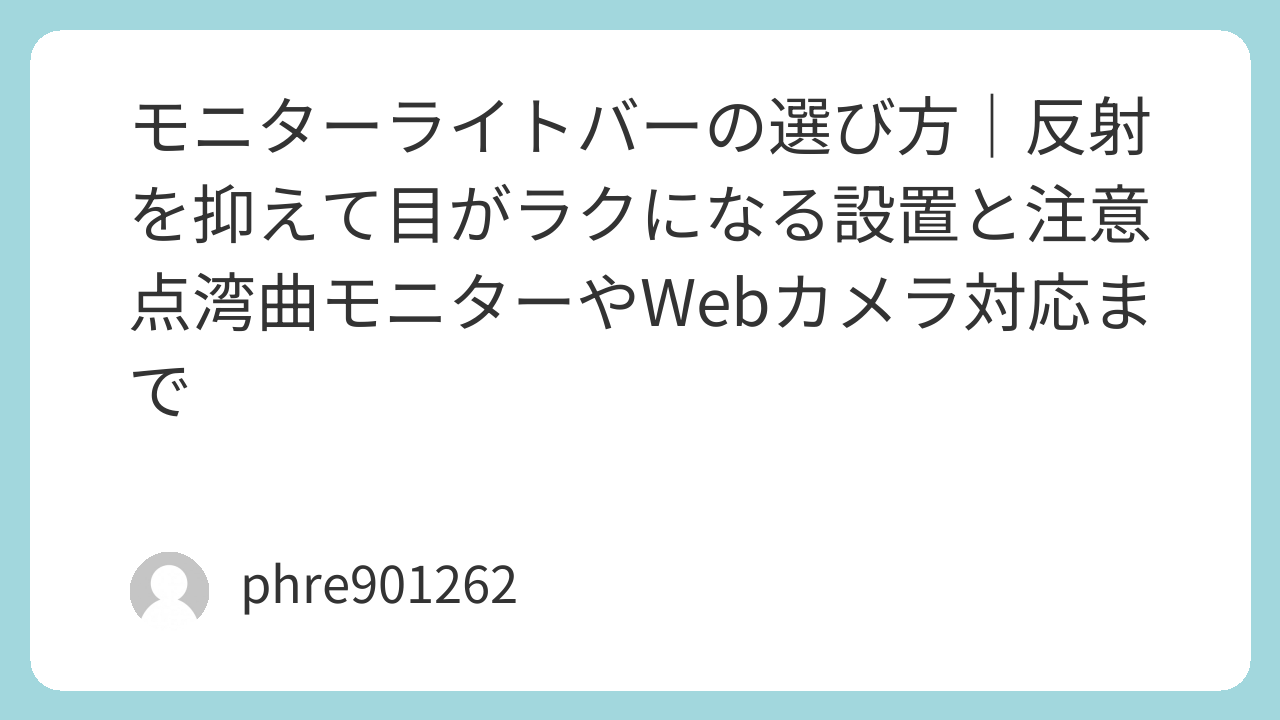 モニターライトバーの選び方|反射を抑えて目がラクになる設置と注意点湾曲モニターやWebカメラ対応まで