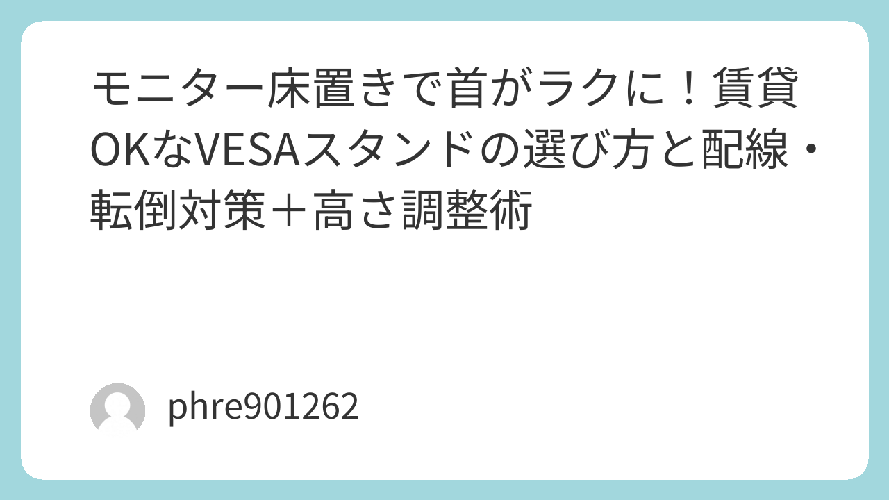 モニター床置きで首がラクに!賃貸OKなVESAスタンドの選び方と配線・転倒対策+高さ調整術