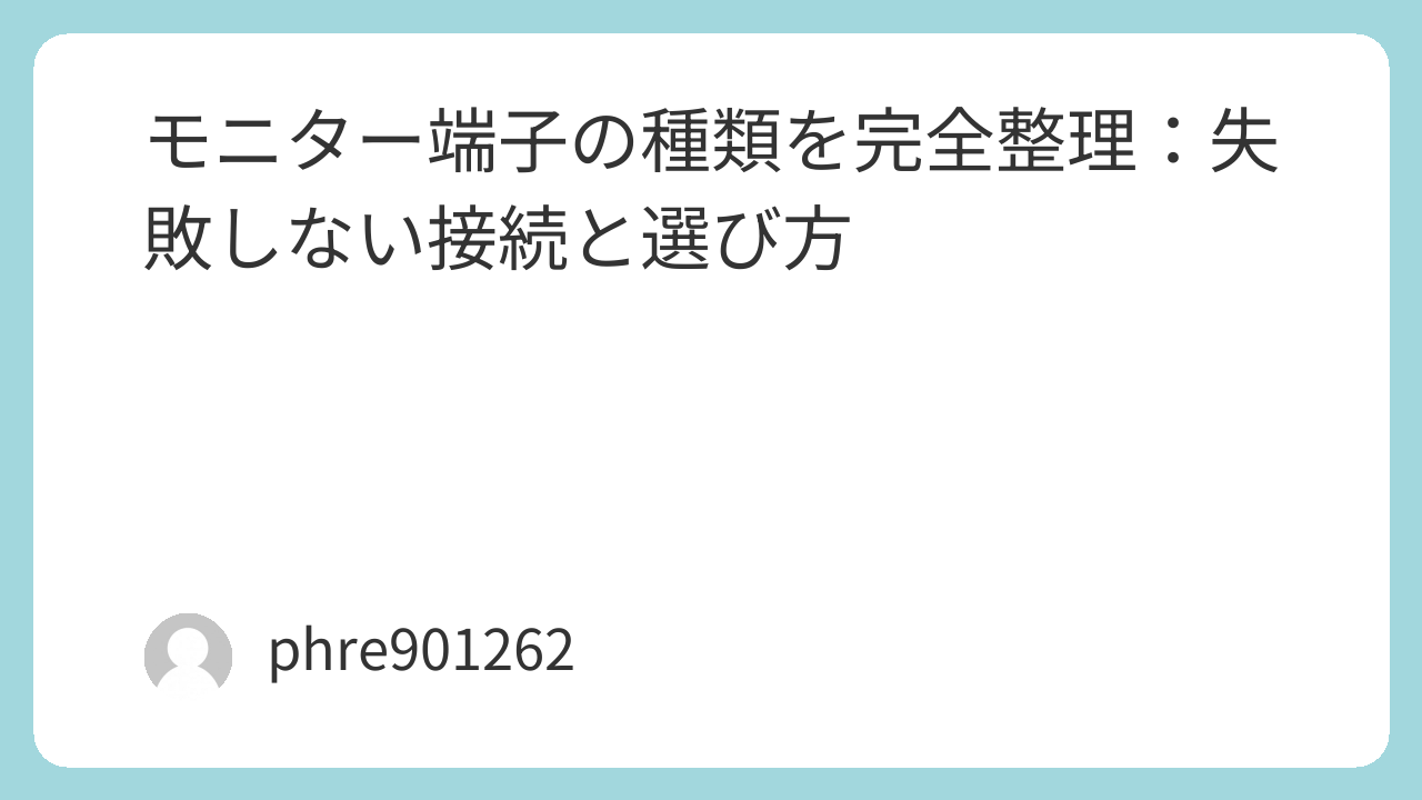 モニター端子の種類を完全整理:失敗しない接続と選び方