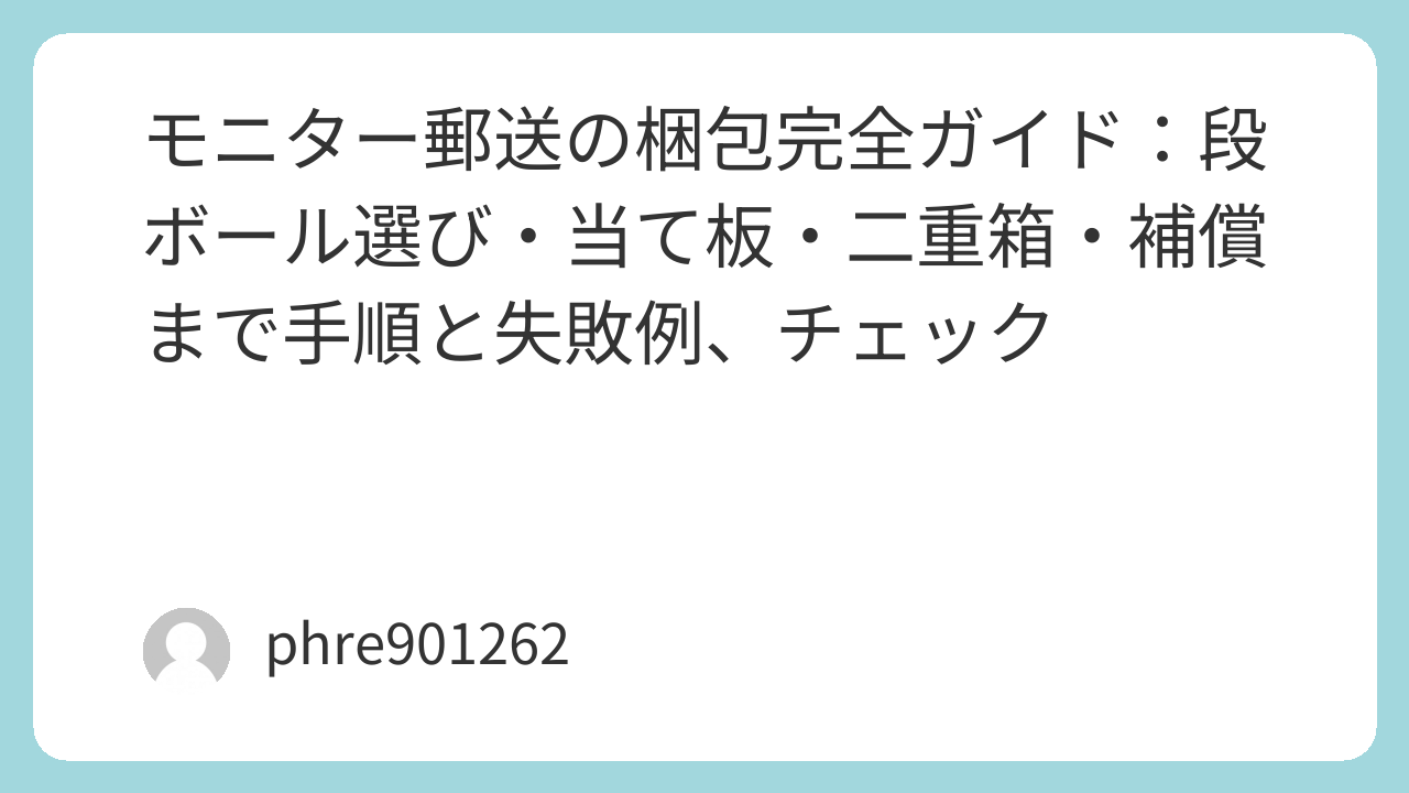 元箱があるなら、それが最優先です。ない場合は、モニター専用の箱を買うほうが手戻りが少ない。たとえばモニター梱包用ダンボール 27インチ(プロカートンマックス) https://www.amazon.co.jp/s?k=%E3%83%97%E3%83%AD%E3%82%AB%E3%83%BC%E3%83%88%E3%83%B3%E3%83%9E%E3%83%83%E3%82%AF%E3%82%B9+%E3%83%A2%E3%83%8B%E3%82%BF%E3%83%BC+%E6%A2%B1%E5%8C%85+%E3%83%80%E3%83%B3%E3%83%9C%E3%83%BC%E3%83%AB+27%E3%82%A4%E3%83%B3%E3%83%81&tag=opason-22 みたいにサイズ前提の箱は、最初から“収まり”が良い。サイズが合わないと、どれだけ緩衝材を足しても中でズレていきます。