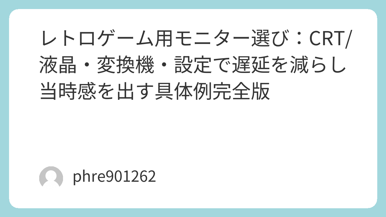 CRTルートを選ぶなら、買う前に確認するのは3つだけ。置けるか、繋げるか、状態が許せるか。特に繋げるかは端子の話で詰まります。コンポジット、S端子、RGB、コンポーネント。あなたの実機が何を出せて、CRT側が何を受けられるか。ケーブルも含めて揃えるなら、たとえばRGB21なら本文中で出てくる「RGB21 SCART ケーブル(https://www.amazon.co.jp/s?k=RGB21+SCART+%E3%82%B1%E3%83%BC%E3%83%96%E3%83%AB&tag=opason-22)」みたいなキーワードで探すと早いです。S端子なら「S端子 ケーブル(https://www.amazon.co.jp/s?k=S%E7%AB%AF%E5%AD%90+%E3%82%B1%E3%83%BC%E3%83%96%E3%83%AB&tag=opason-22)」、コンポーネントなら「コンポーネントケーブル YPbPr(https://www.amazon.co.jp/s?k=%E3%82%B3%E3%83%B3%E3%83%9D%E3%83%BC%E3%83%8D%E3%83%B3%E3%83%88%E3%82%B1%E3%83%BC%E3%83%96%E3%83%AB+YPbPr&tag=opason-22)」のように端子名を直球で入れるのが一番。