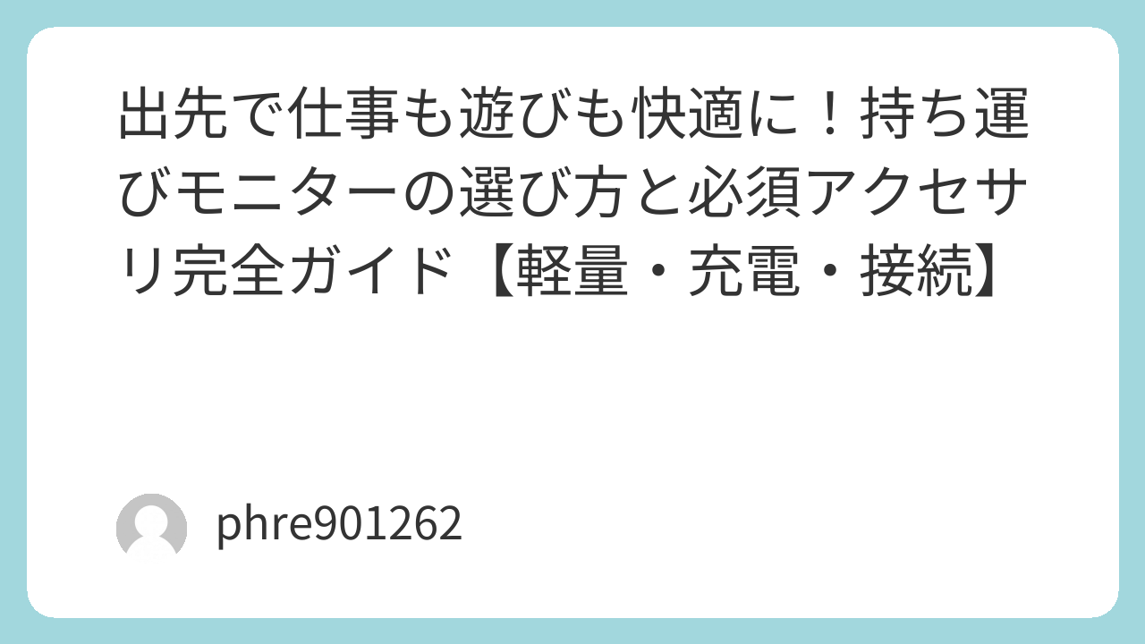 出先で仕事も遊びも快適に!持ち運びモニターの選び方と必須アクセサリ完全ガイド【軽量・充電・接続】