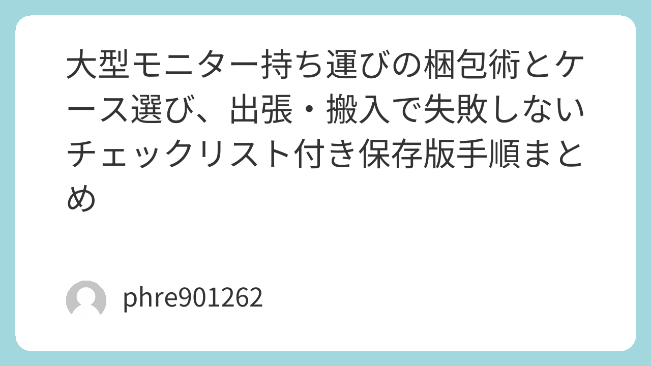 大型モニターの持ち運びは、気合いよりも「押されない構造」を作れるかで決まる。結論から言うと、画面に当て板を入れて面で守り、四隅を厚めにして、ケースで“動かない状態”に固定する。これだけで事故はかなり減る。