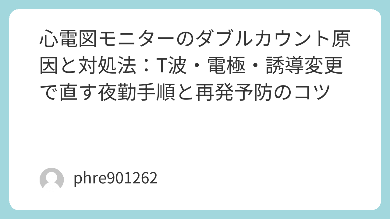 夜勤で急に「心拍120!」みたいに鳴り出して、ベッドサイドへ走ったら本人は平然。脈を取ると60くらいで規則的。あれ、ってなるやつ。心電図モニターの“ダブルカウント”は、だいたいこのパターンから始まります。結論から言うと「心拍が本当に倍になった」より「モニターが1拍を2回数えてる」ことが多いです。理由は単純で、R波だけじゃなくT波やスパイクまで拾ってしまう場面があるから。ここを押さえると、アラームに振り回されずに落ち着いて切り分けできます。