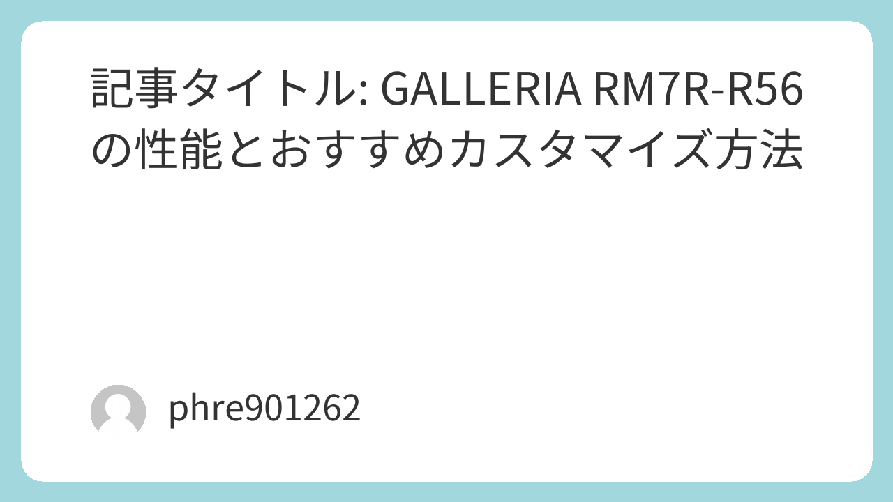記事タイトル: GALLERIA RM7R-R56の性能とおすすめカスタマイズ方法