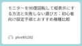 1週間:画面の明るさやドット抜けの有無、発熱のチェック。1か月:色味の馴染みやパネルのムラ、長時間使用時の輝度低下を確認しましょう。問題があれば早めにサポートへ連絡するのが得策です。