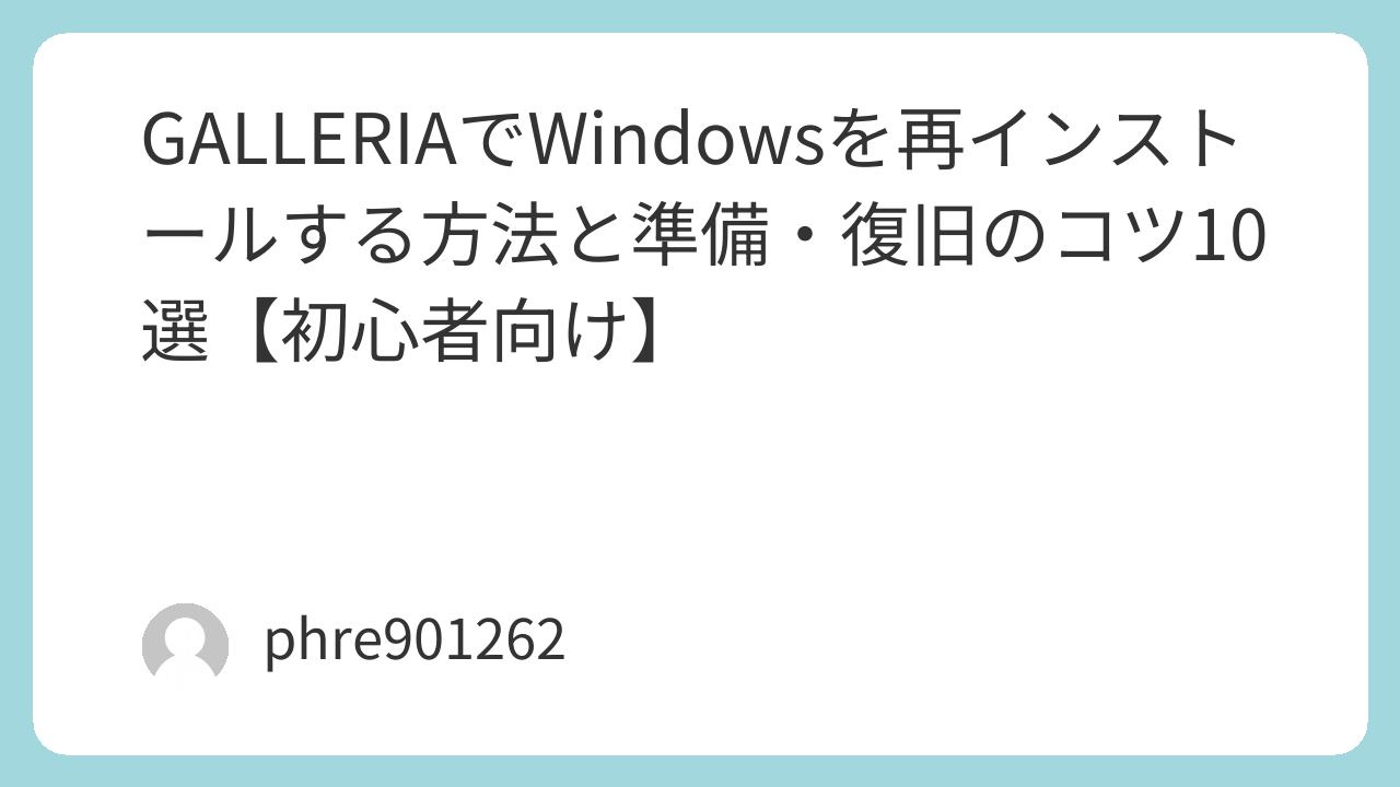 GALLERIAでWindowsを再インストールする方法と準備・復旧のコツ10選【初心者向け】