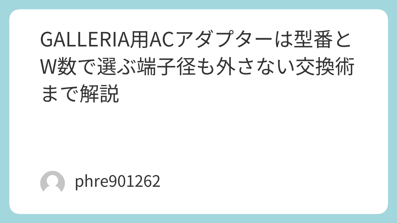 GALLERIAのACアダプターを探す人は、たいてい「急に充電が不安定になった」「ケーブルの根元が熱い」「中古で付属が合わなかった」といった切実な状況にいる。ここで最短で正解に近づくには、対応機種(型番)→ワット数(W)→端子径の順に確認していくのがいちばん堅い。見た目が似たアダプターでも、W数不足や端子の微妙な違いでトラブルが起きやすく、焦って買うほど遠回りになりがちだ。