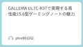 また、GALLERIA ゲーミングノートPC UL9C‑R49(17.3インチモデル)は、240Hzのリフレッシュレートを誇る大画面ディスプレイが魅力です。これにより、FPSやMOBAゲームなどでの反応速度が大幅に向上し、競技シーンでも活躍できるポテンシャルを持っています。大画面のため、長時間のプレイでも目の負担を軽減し、快適な視覚体験が提供されます。