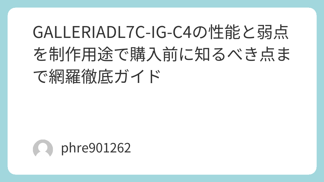 制作ノートを探して「GALLERIA DL7C-IG-C4」にたどり着いた人が気にするのは、持ち運べる薄型でありながら編集作業をどこまで快適に回せるか、そして「あとから後悔しない弱点は何か」という一点に尽きる。結論から言えば、このモデルは“外へ持ち出す制作”に寄せたバランス型で、周辺アイテムの選び方で満足度が大きく伸びるタイプだ。