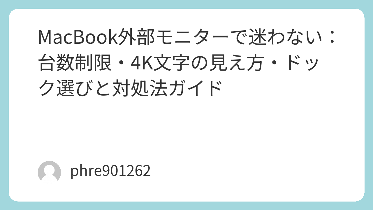 机に置いたのは、ずっと憧れてた大きめの4Kモニター。ところが最初の数日は「文字ちっさ……」で肩がガチガチ。ここで気づいた。外部モニター選びって、画面の良し悪しより「つなぎ方」と「見え方」のほうが体感に直結する。この記事は、MacBookで外部モニター運用を始める人が、無駄買いを減らしてサクッと快適にするための道筋をまとめた。