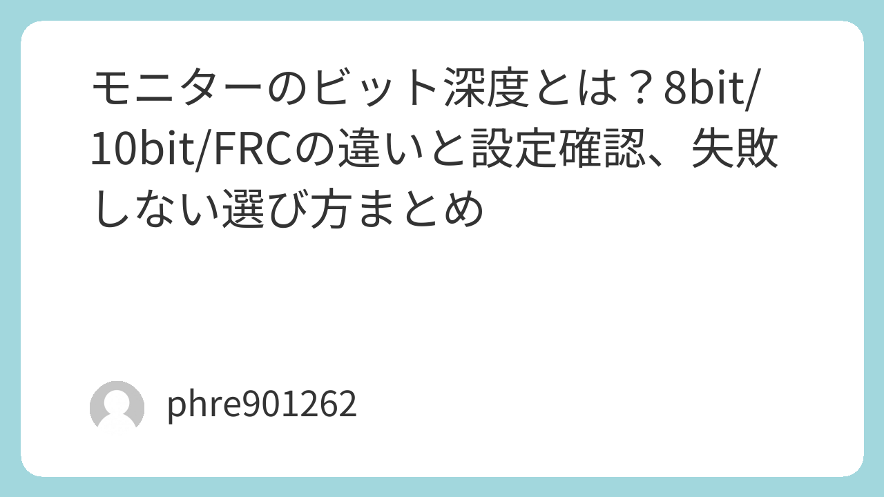 - 「8bit+FRCは避けるべき?」:用途次第。普段使いなら十分。編集で追い込むなら、実機の評価や色管理まで含めて見る