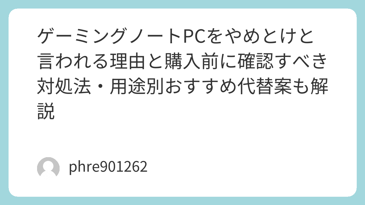 ゲーミングノートPCをやめとけと言われる理由と購入前に確認すべき対処法・用途別おすすめ代替案も解説