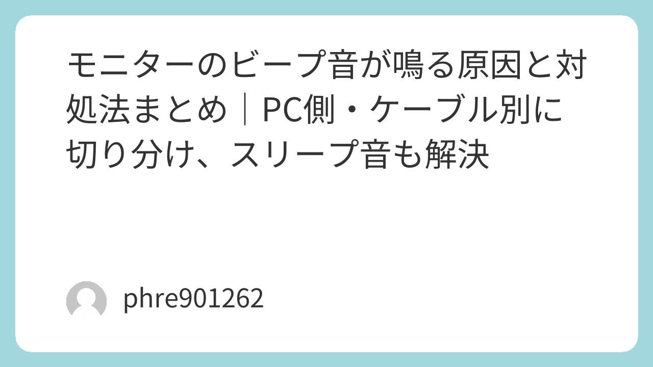 「ビープ音=モニター故障」と決めつけないのがコツ。原因が見えると、止め方もちゃんとある。静かな部屋で作業したい人ほど、早めに一度だけ本気で切り分けてしまうと、その後がずっとラクになる。