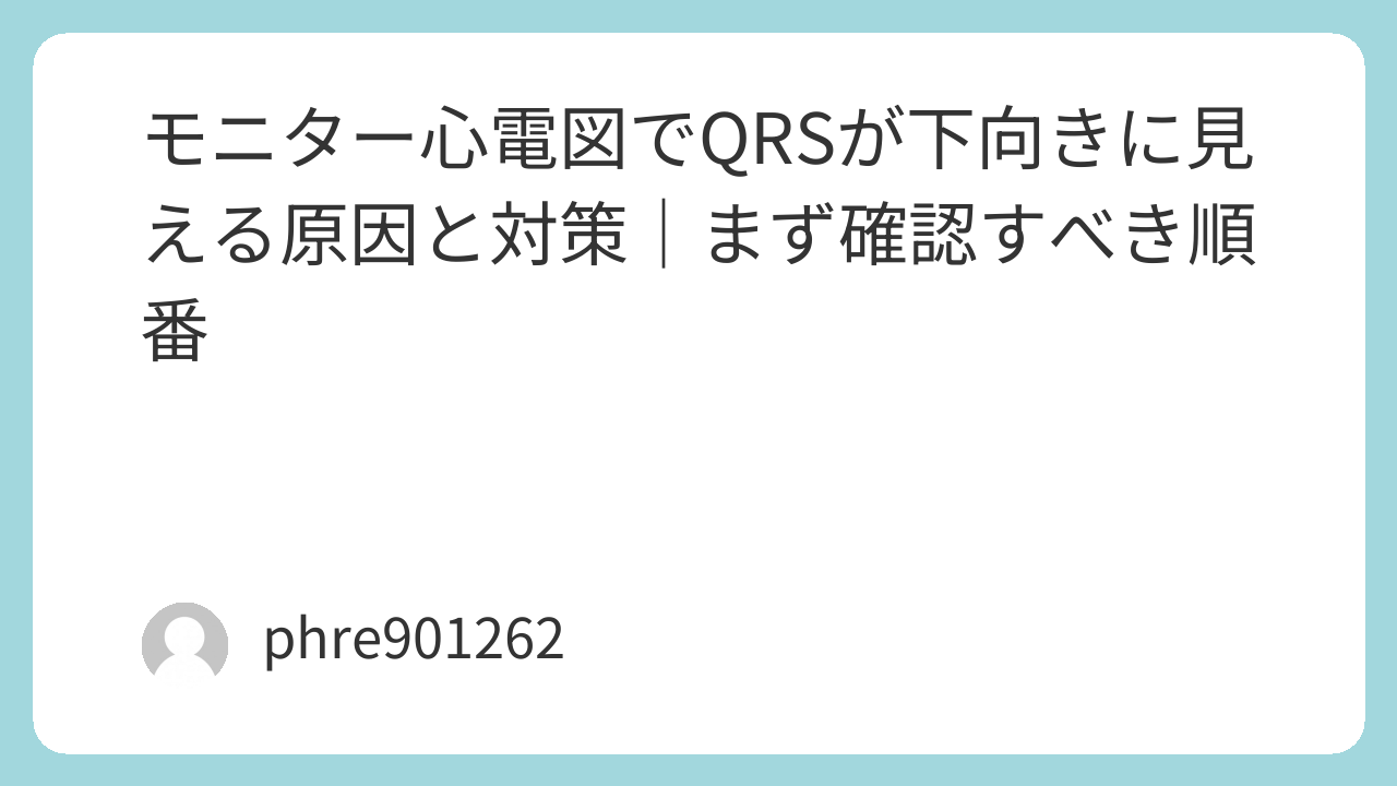 最後にもう一度、結論に戻る。モニターでQRSが下向きに見えたら、まず誘導を確認し、次に電極の付け間違いと接触不良を潰す。それでも急な変化や症状があれば、そこから先は「異常の可能性」を優先して動く。慣れると、この順番だけで判断がぶれにくくなる。下向きを見て慌てる前に、原因を手順でほどいていこう。
