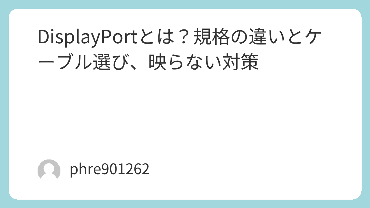 結局、DisplayPortは性能を出しやすい代わりに、ケーブルや変換が絡むと途端に繊細になります。逆に言えば、条件を揃えた瞬間にスパッと安定する端子でもある。迷ったら「目的(解像度/Hz/多画面/USB-C)→規格→ケーブル」の順で組み立てると、遠回りしません。