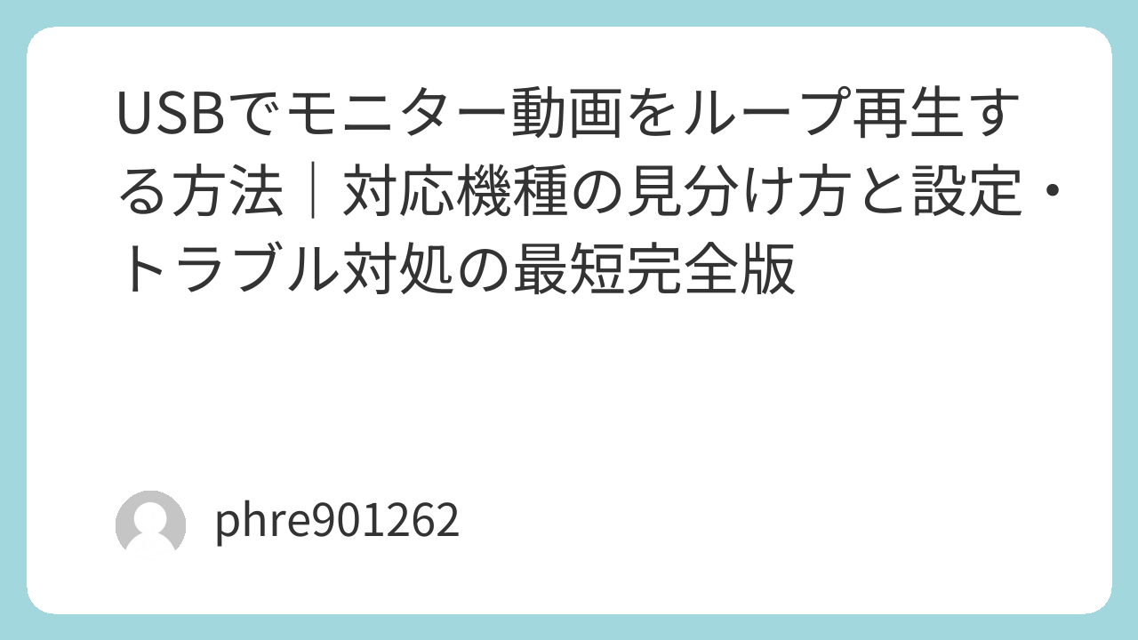 USBを挿したら勝手に動画が回り続ける。これを期待してモニターのUSB端子に突っ込みたくなるけど、結論はわりとシンプルで「そのモニターがUSBメディア再生(しかもリピート対応)を持っているか」で9割決まります。PC用モニターのUSBは給電やハブ用途が多く、動画再生メニュー自体が無いことも珍しくありません。だから最初に“できる土俵”かどうかを見抜いて、無理なら外部プレーヤーで片付ける。これが一番早いです。