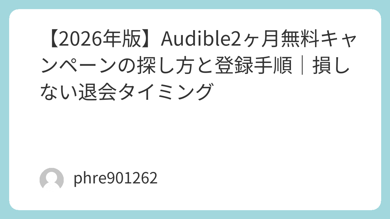 「audible 2ヶ月無料」で調べる人の多くは、30日無料は見たことあるけど“2ヶ月”はどこ?というところで止まる。結論、2ヶ月無料はいつでも出ている表示じゃなく、キャンペーン用の入口を踏んだ人だけに出るタイプがある。だから探し方を間違えると、永遠に30日無料の画面だけ見て帰ることになる。