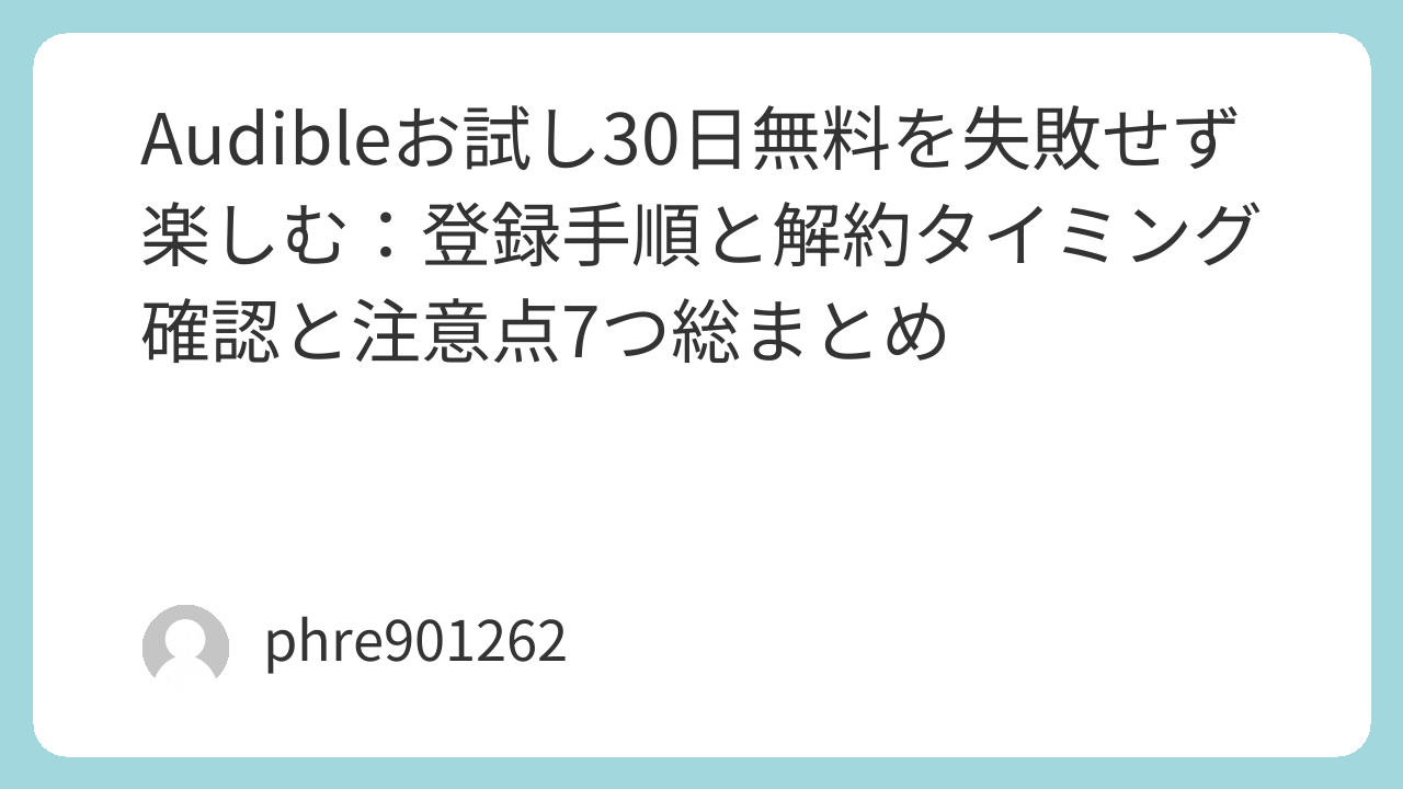 迷う人は「登録した日に退会手続きだけ済ませる」でもOK。無料期間の終わりまで聴けるケースが多いので、忘れて課金される事故が起きません。※最終的には、あなたのアカウント画面の表示条件が最優先です。
