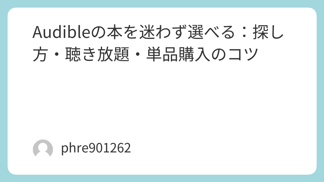 「audible book」で検索する人が知りたいのは、結局この2つだと思う。Audibleで“本”をどう探して、どうやって聴き始めればいいのか。もうひとつは、表示された作品が「聴き放題」なのか「購入」なのか、その見分け方。ここさえ押さえれば、最初の1冊で迷子になりにくい。