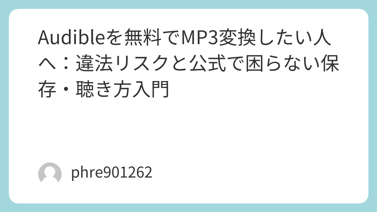 「AudibleをMP3に無料変換したい」。この検索をする人の多くは、変換そのものが目的というより“困りごと”を片づけたいだけだ。結論から言うと、Audible作品は基本的に保護付きの形式で提供されるため、無料でMP3化する発想はトラブルに近づきやすい。だから先に「何に困っていて、どう聴きたいのか」を整理したほうが早い。ここでは危ない橋を渡る手順は扱わず、現実的に困らないルートをまとめる。