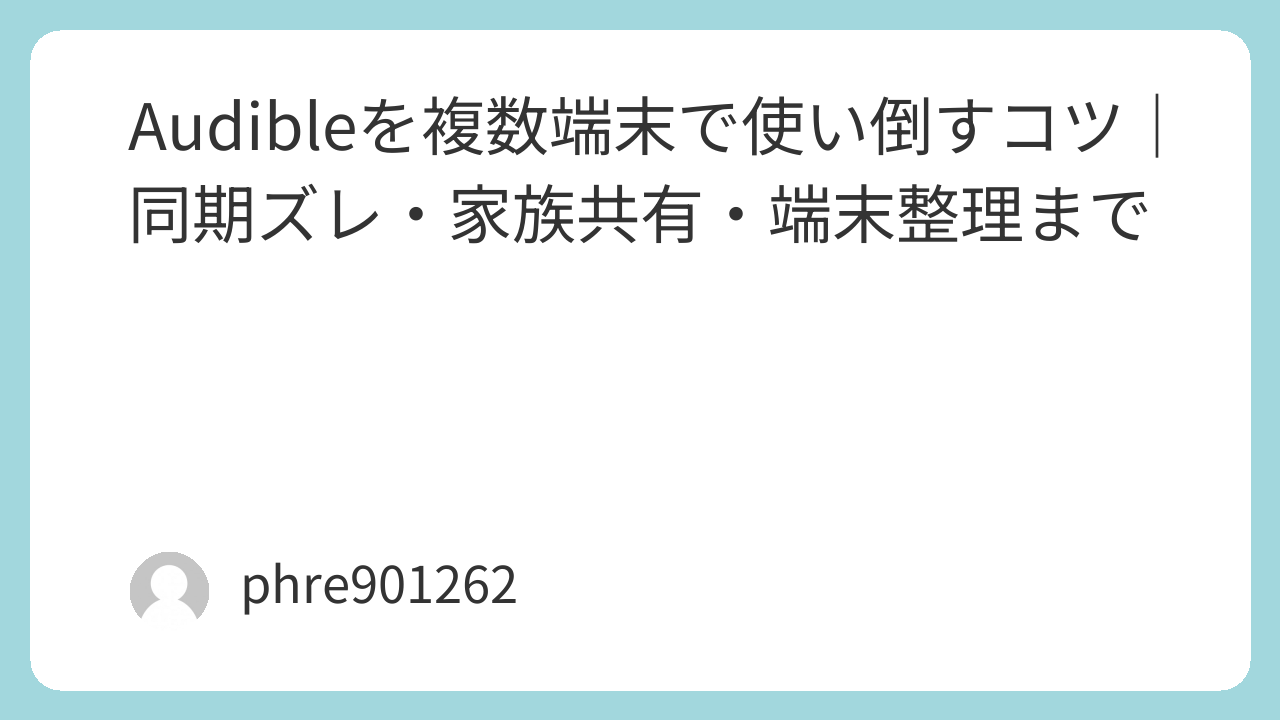 Audibleを「スマホで聴いて、家に帰ったらタブレットで続き」という使い方にしたい人は多い。結論から言うと、Audibleは複数端末で使える。ただし、快適さは設定より“運用”で決まる。ここを知らないまま端末を増やすと、再生位置がズレたり、家族と共有して気まずくなったり、端末が増えすぎて管理がぐちゃっとする。この記事では、その地雷を避けて、複数端末を自然に使い分ける現実的なコツをまとめる。