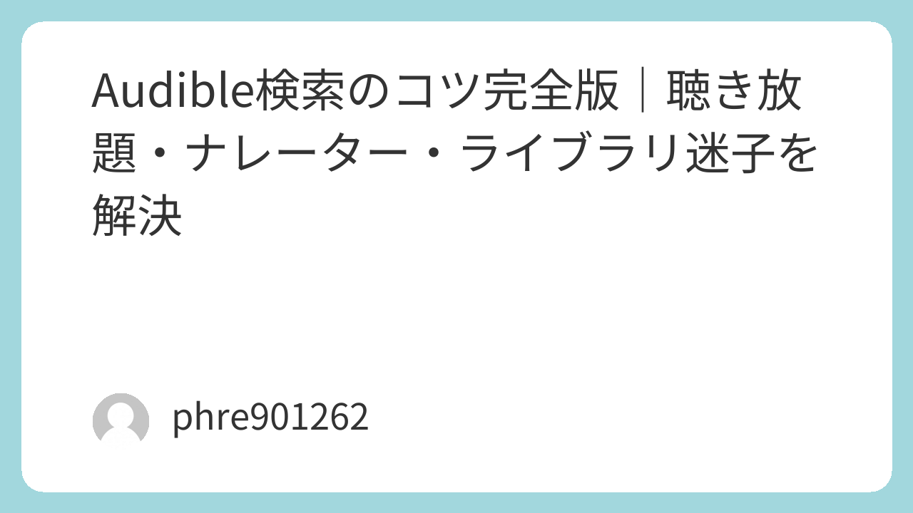 聴き放題で探すなら、カテゴリーから棚を見てから検索で追い込む。ナレーターで探すなら、まず一本当たり作品を見つけて、詳細ページのナレーターから深掘りする。持っている本を探すなら、ライブラリのフィルターで一気に出す。これだけで、Audibleの検索は“迷子”から“道具”に変わります。