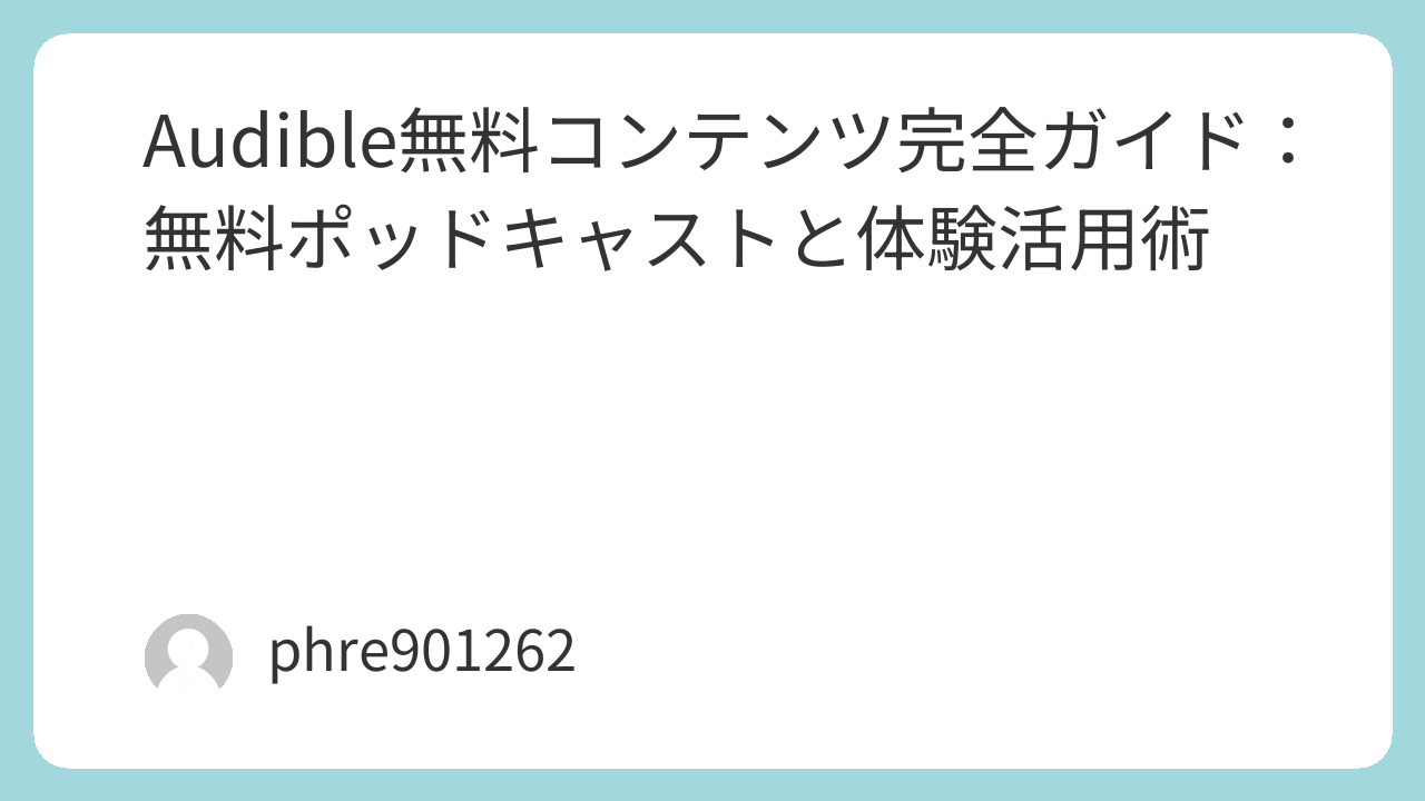 Audibleの無料コンテンツは、無料ポッドキャスト→無料体験の順で試すと失敗しにくいです。最初から完璧に使いこなす必要はありません。自分の生活の隙間に入る形に寄せていくと、自然に聴く時間が増えていきます。
