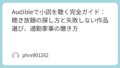 最初の1冊は、単品購入でいい。買えないときは支払い情報とブラウザ購入の導線を見直す。買ったらオフラインまで落として、次に聴く本を決める。ここまで回ると、Audibleの“購入”はもう怖くなくなる。