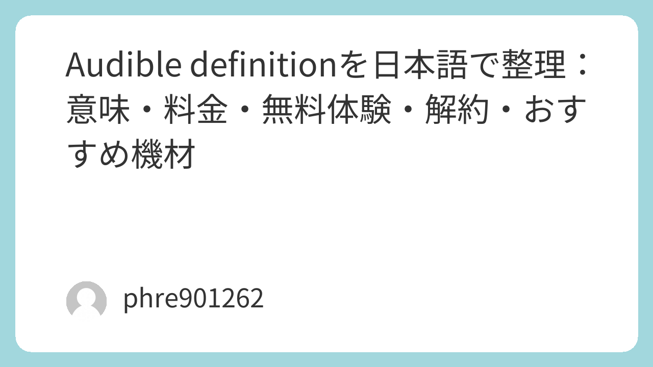 audible(英単語)は「聞こえる」。Audible(サービス)は「聴く読書」。月額1,500円を基準に、まずは無料体験で“自分の生活に溶けるか”だけ試す。合うなら機材を整えると伸びるし、合わないならスパッと退会でOK。(Audible.co.jp)