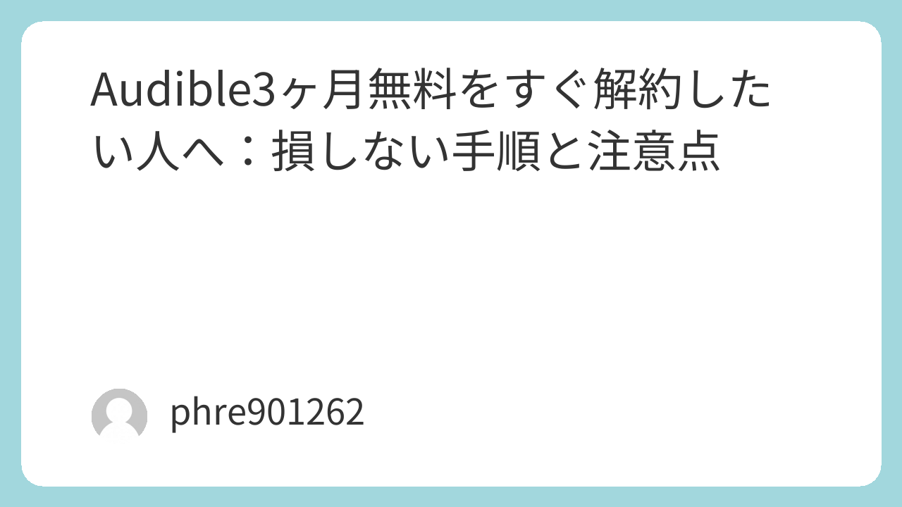 3ヶ月無料の文字を見ると、つい「忘れる前に解約しとこ」と思う。気持ちはわかる。だけどAudibleは、解約の押しどころを間違えると無料3ヶ月を自分から短縮してしまう。いちばん多いのは、申込直後に退会して「1ヶ月で終わった…」となるパターン。ここでは“今すぐ安心したい”人に向けて、損しない考え方と手順を、実際の体験ベースでまとめる。