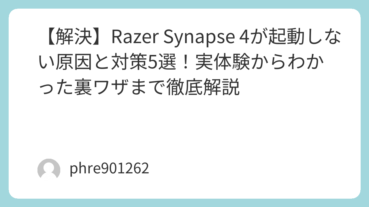 [amazon_link product=”Razer Synapse 4″]が起動しない問題は、単なるバグというより、古い設定ファイルの残留や権限の競合が原因であることがほとんどです。