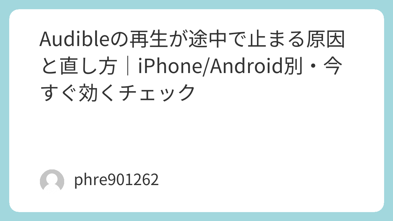 通勤中にいいところでプツッ。Audibleが途中で止まるのは、だいたい「省電力でアプリが眠る」「通信が揺れる」「Bluetoothが不安定」のどれかです。まずは原因を決め打ちせず、止まり方で切り分けるのが近道。ここから順に潰すと、ムダに設定をいじらず戻せます。